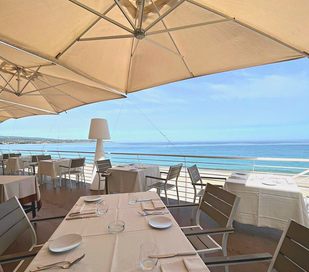 Location romantica, a picco sul mare, e ottime proposte di pesce: tra i piatti, gambero scottato su vellutata di melone e lime e paccheri al gambero rosso.