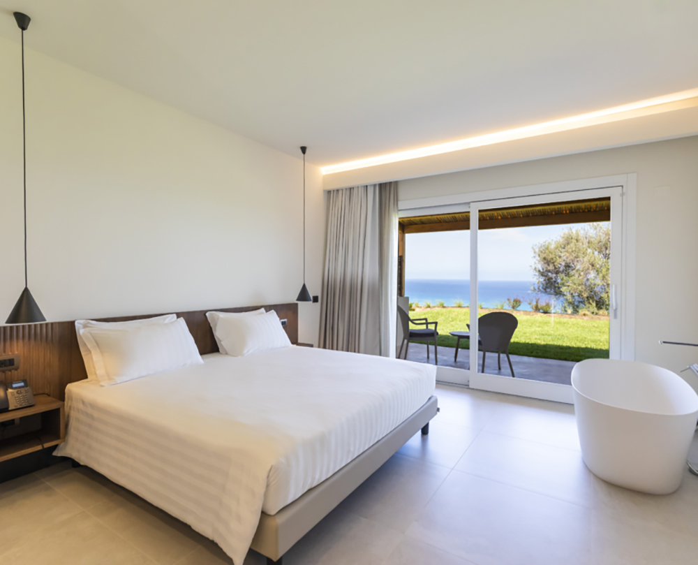 Su una collina da cui si ammira il mare, il resort comprende 40 raffinate suite dal design minimale immerse nella macchia mediterranea. Ottimo ristorante, lido privato.